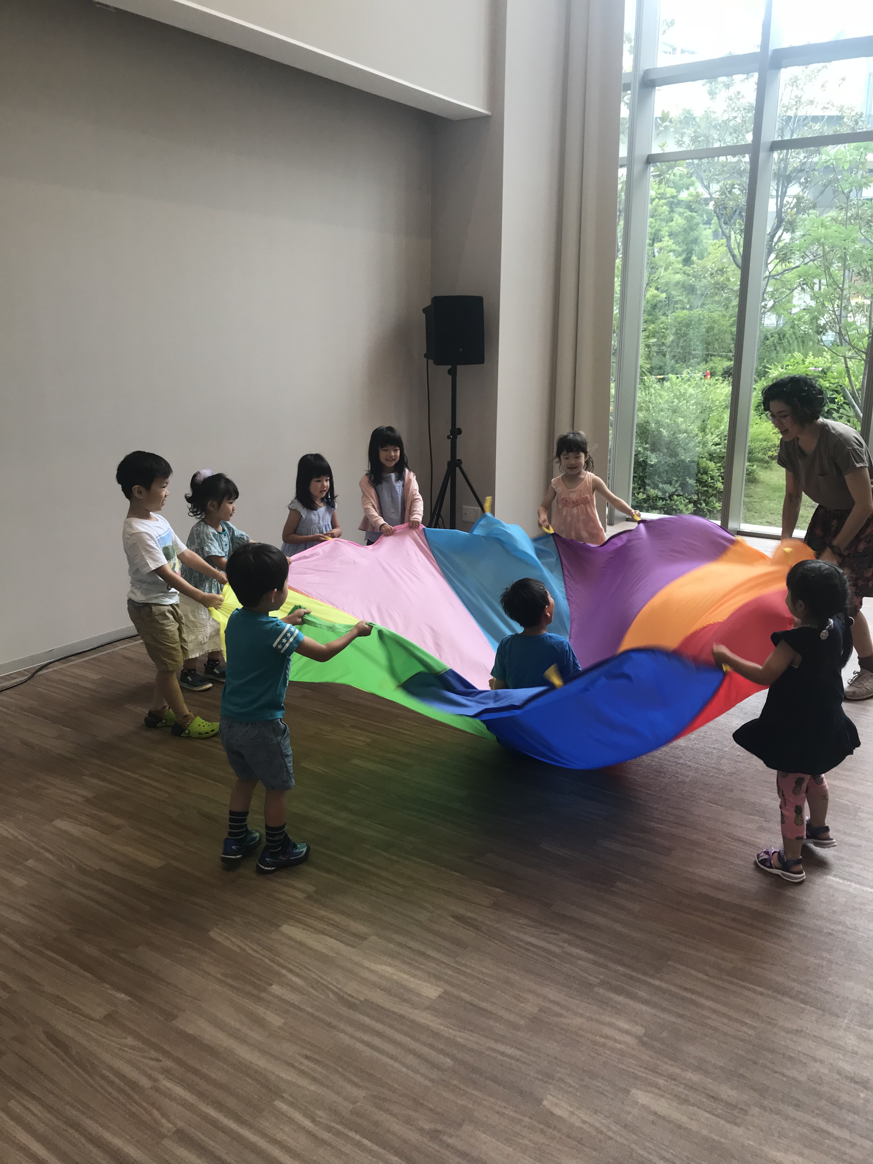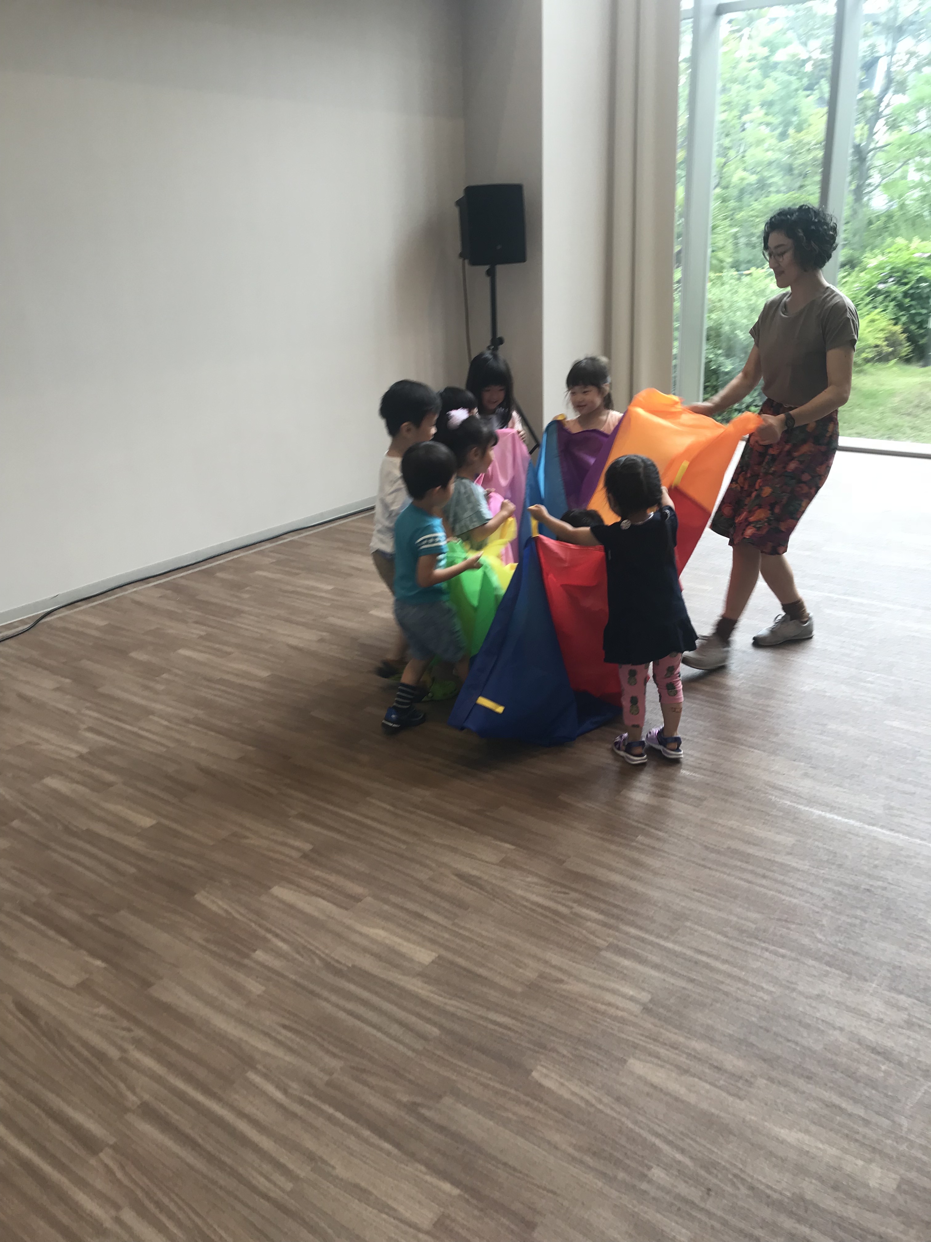 この年齢になると、パラバルーンの遊び方も色々できますね。子供たちは大喜び😊