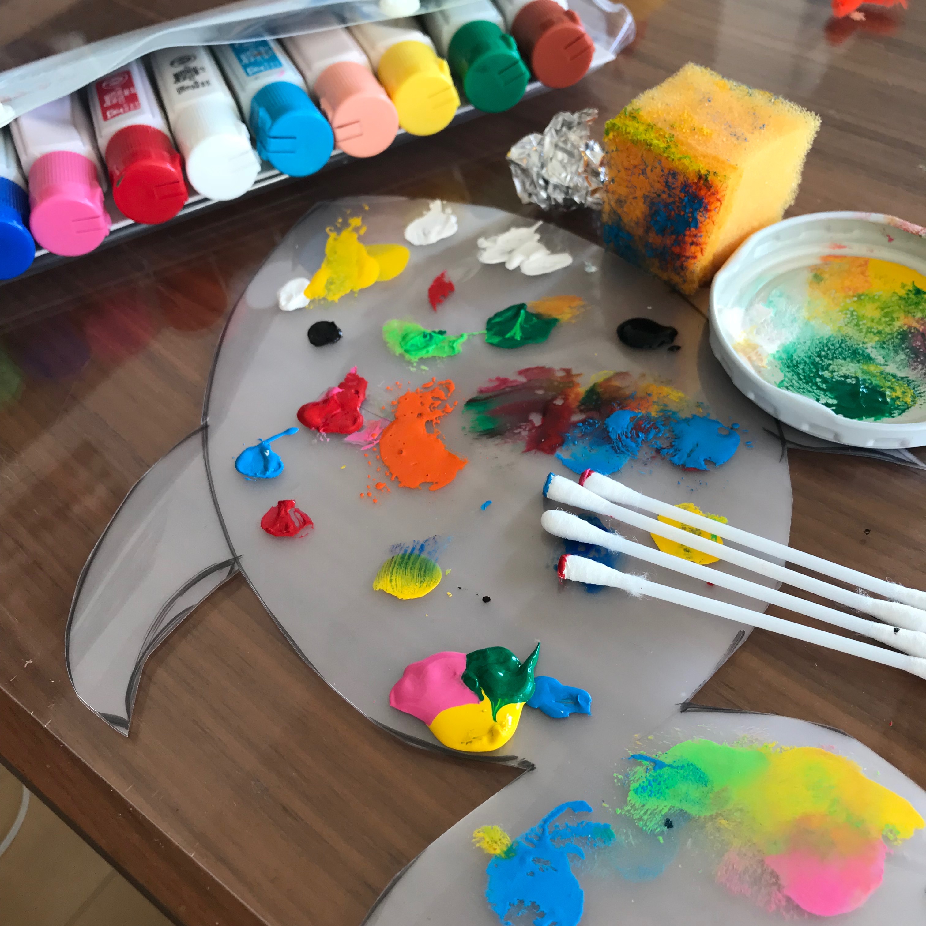 絵の具でおもいっきり遊ぼう🎨ポンポンお魚づくり。