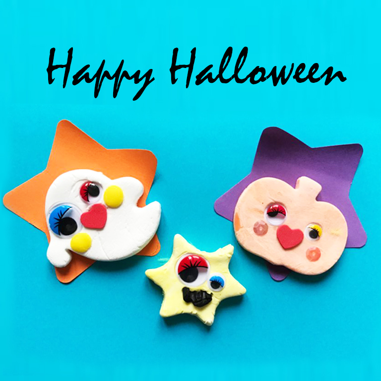ハロウィンソングに、クラフトは、紙粘土でおばけ作り、おばけバック作り、骨骨手形作りなどのハロウィンクラフトに、可愛い仮装を取れるフォトブース設置!