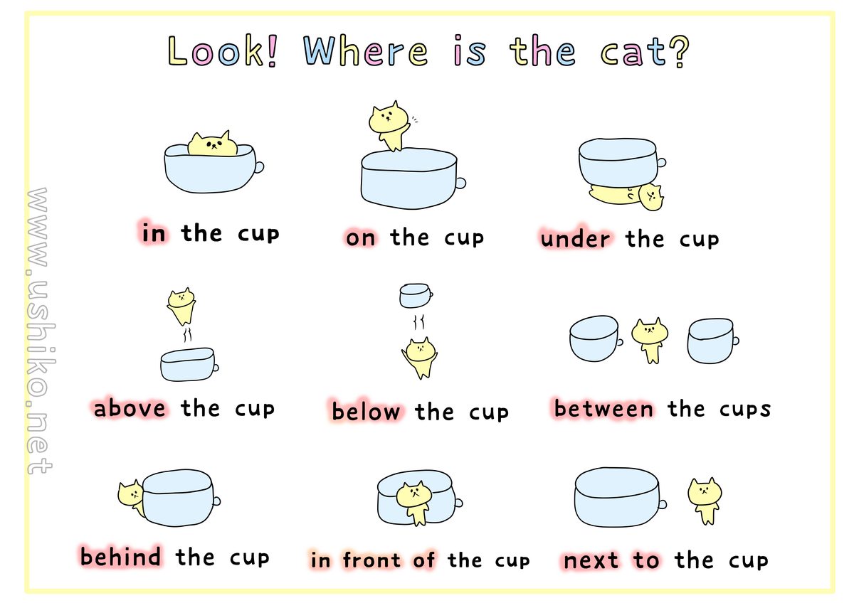 on/under/in front of/next to/by/behind/in/etc..