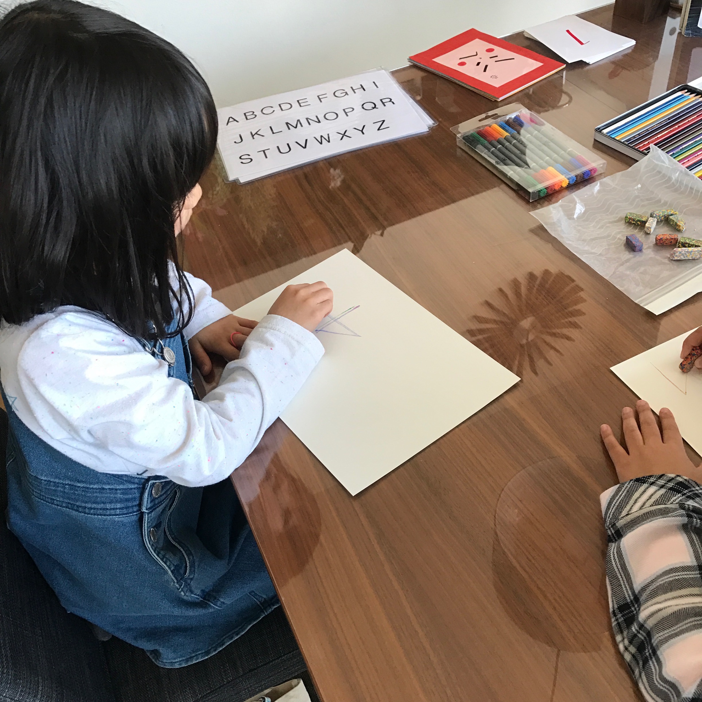 →スピーキング、ライティング、リーディング、フォニックス、クラフト制作などキッズクラスとは少し違い真剣に学んでおります。
