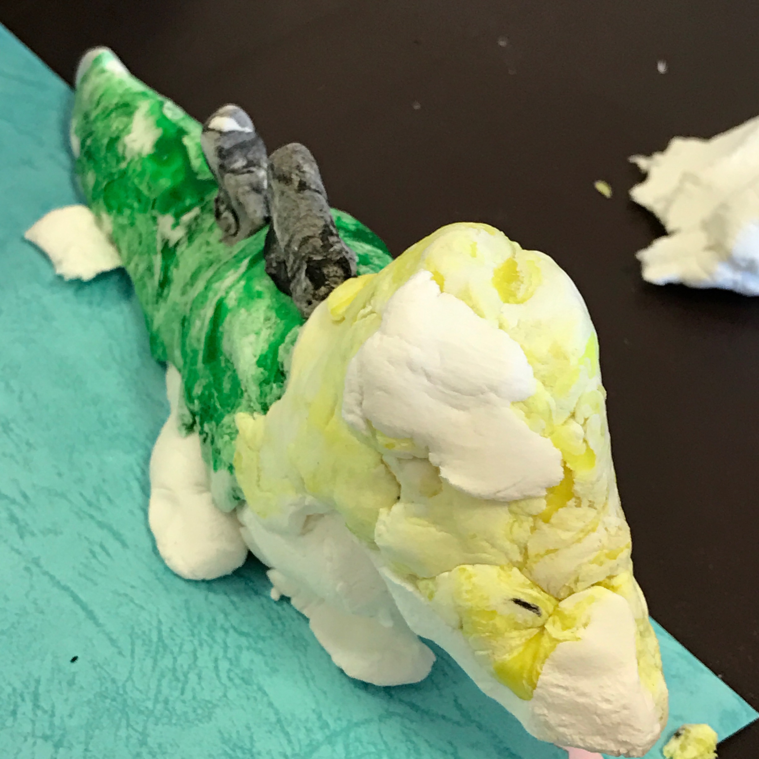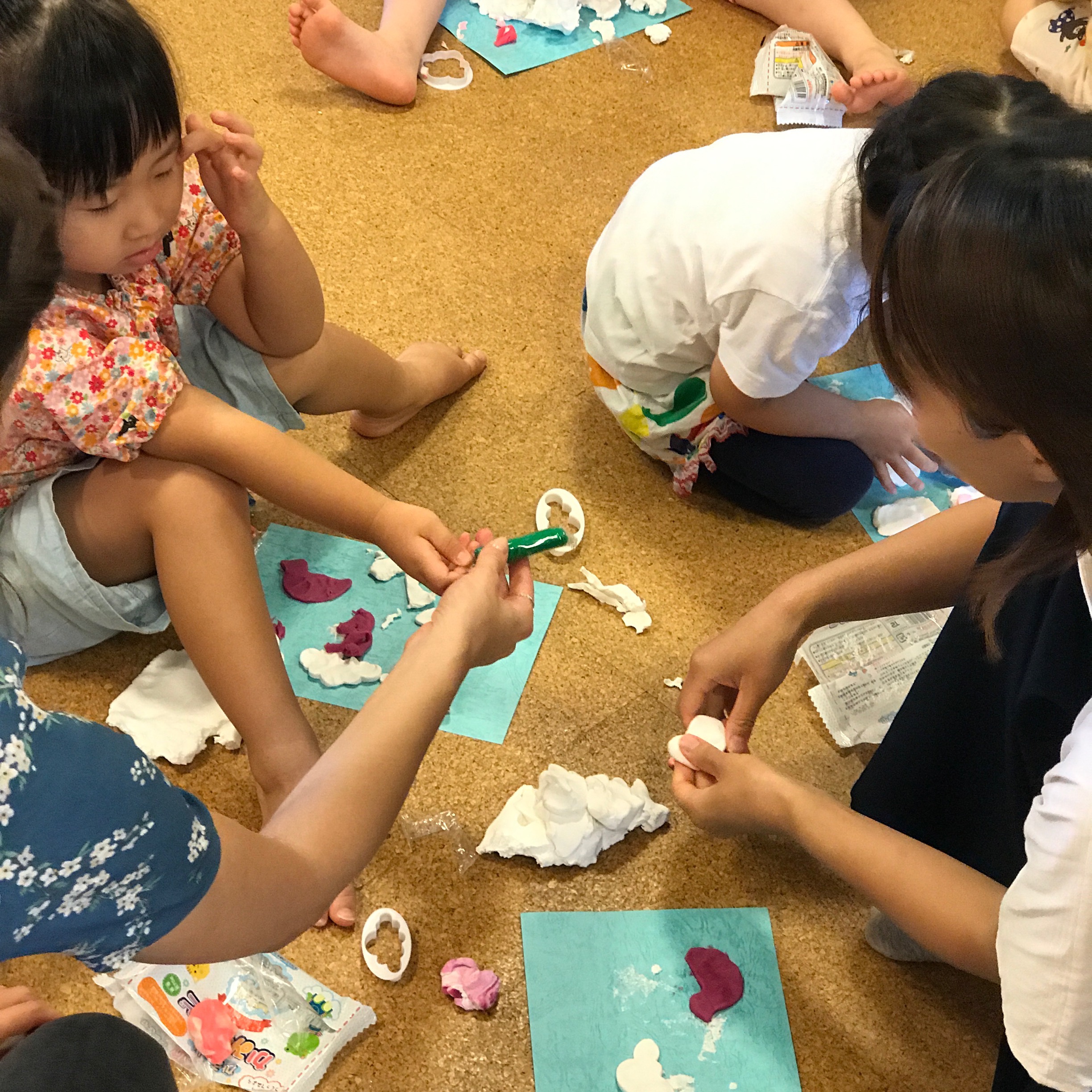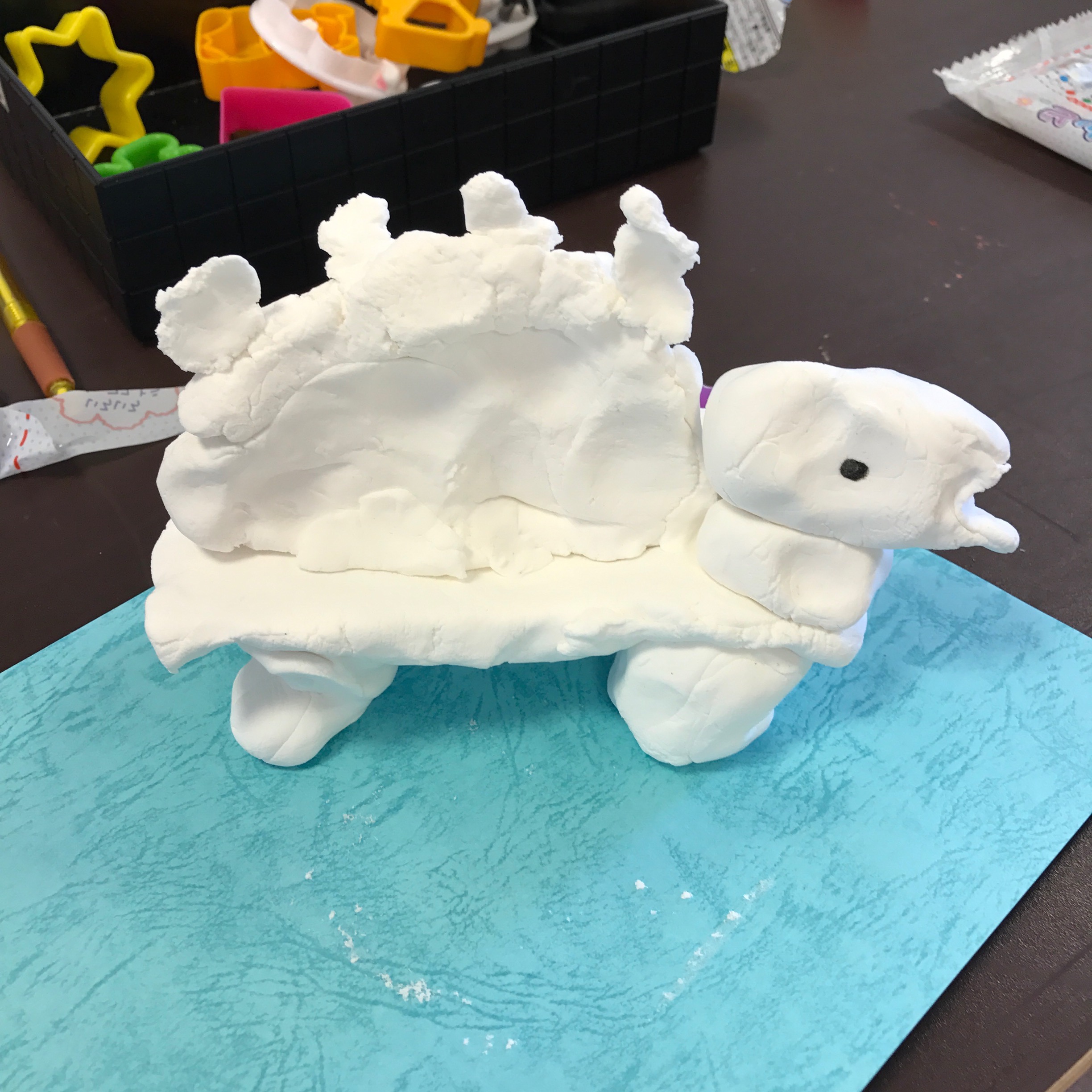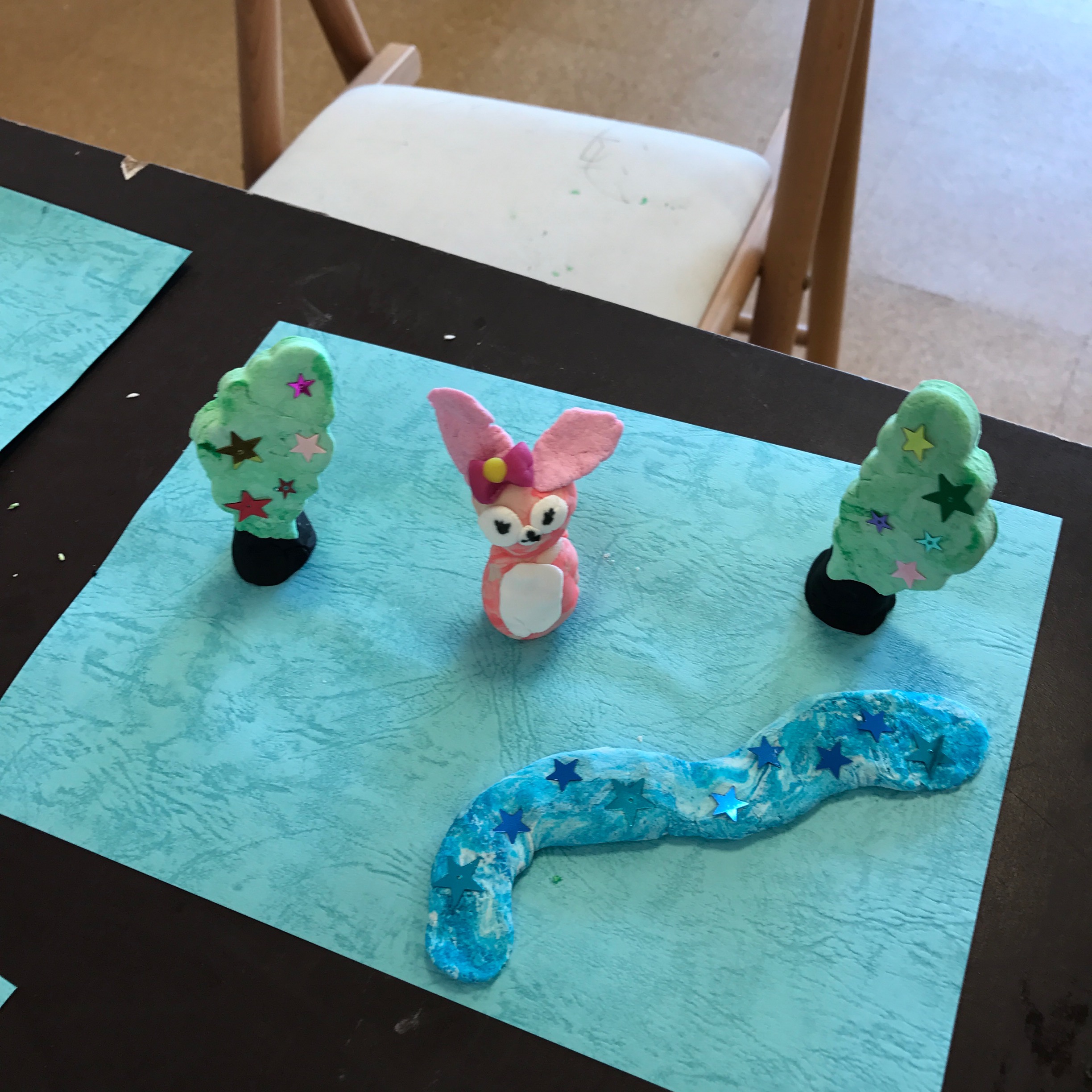 その後はそれぞれが、小さな雲が何に変化したかを考えながら、紙粘土でつくってもらいました。