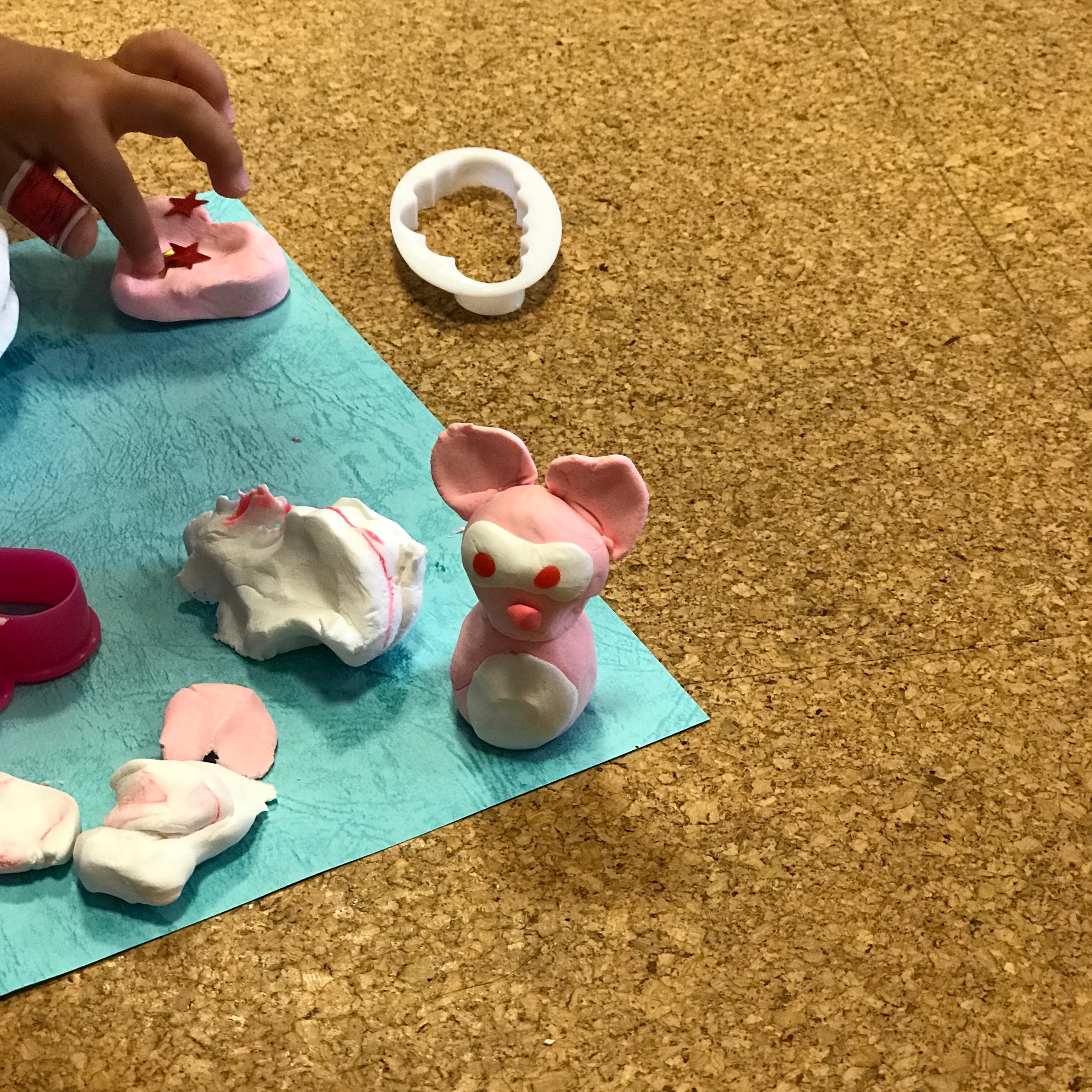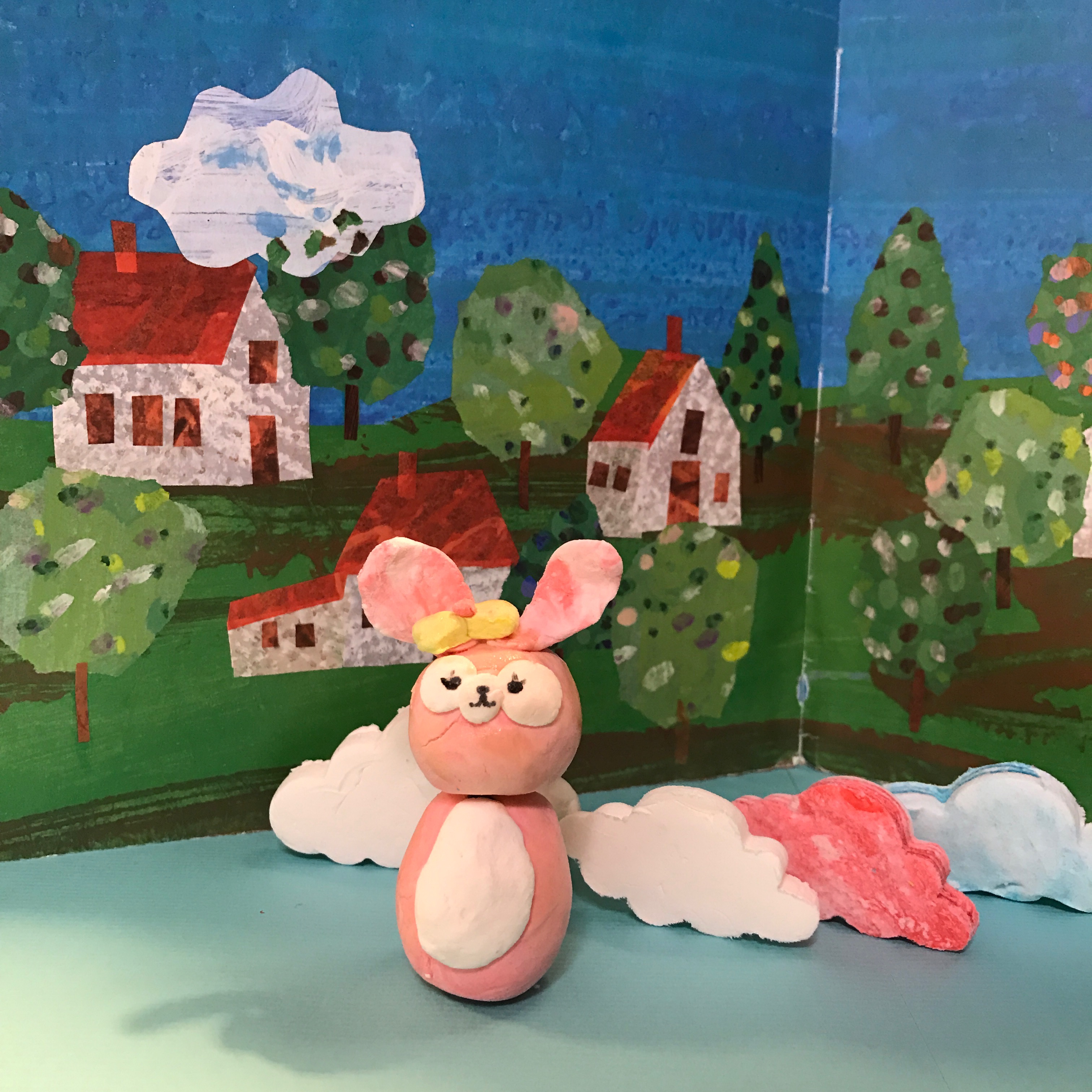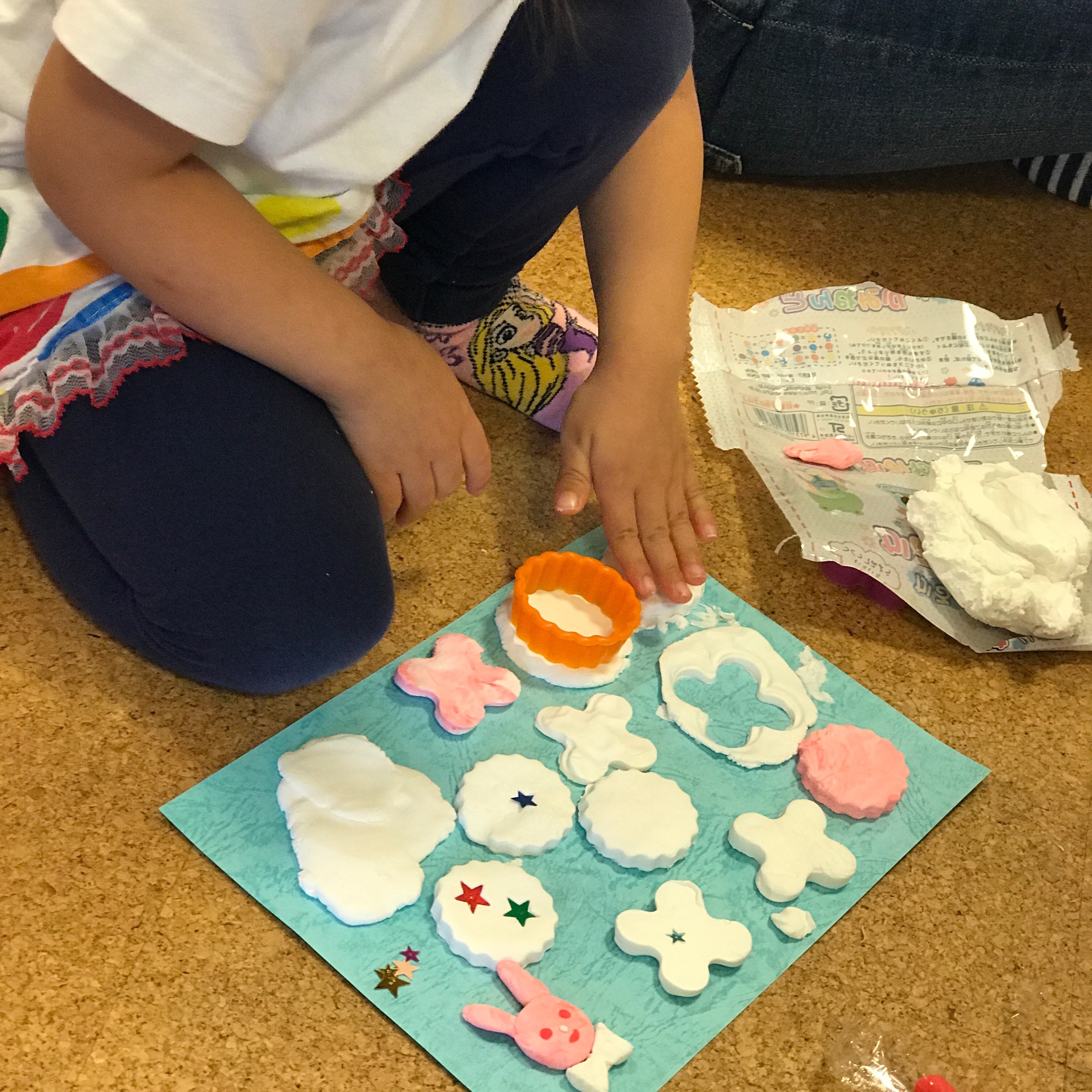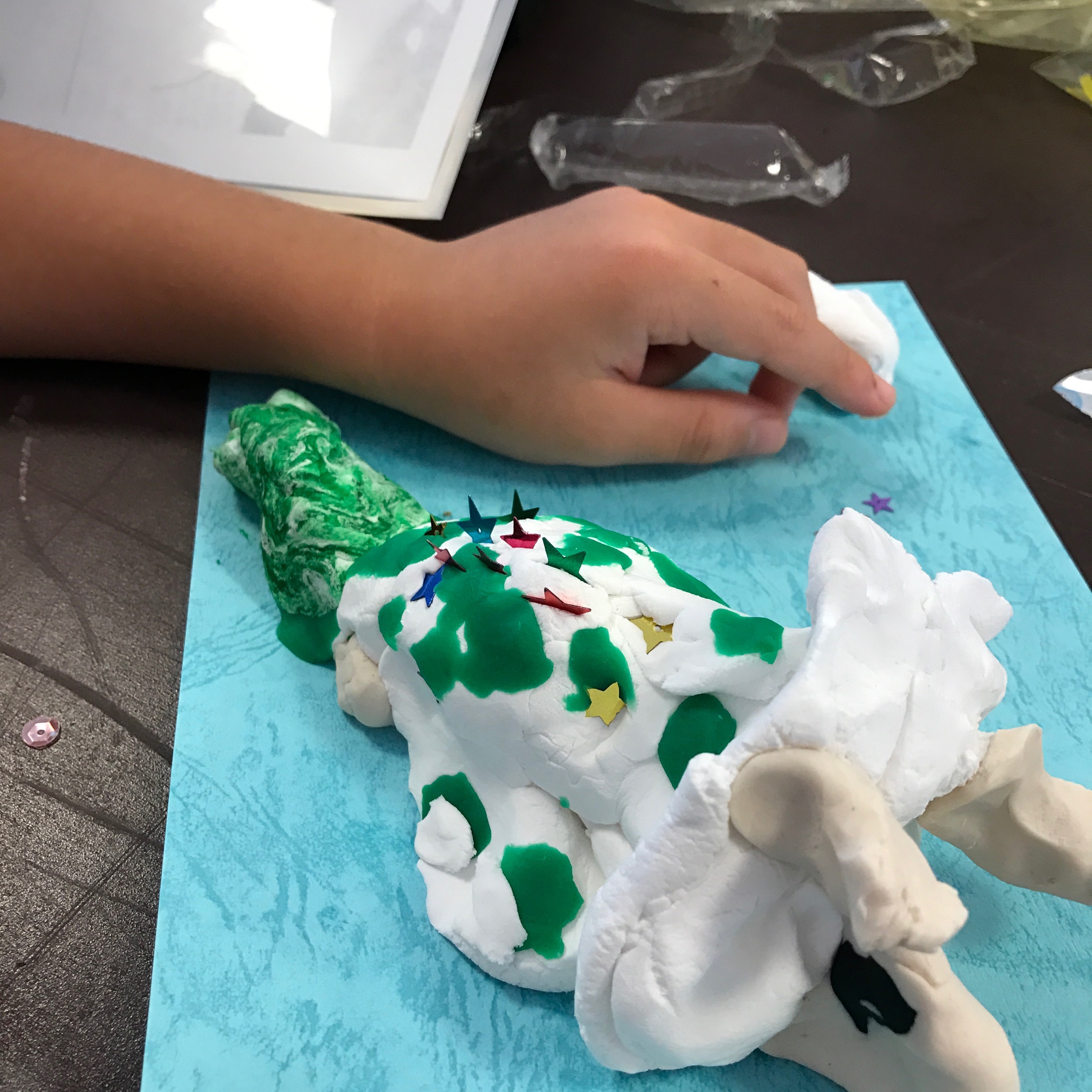 その後はそれぞれが、小さな雲が何に変化したかを考えながら、紙粘土でつくってもらいました。