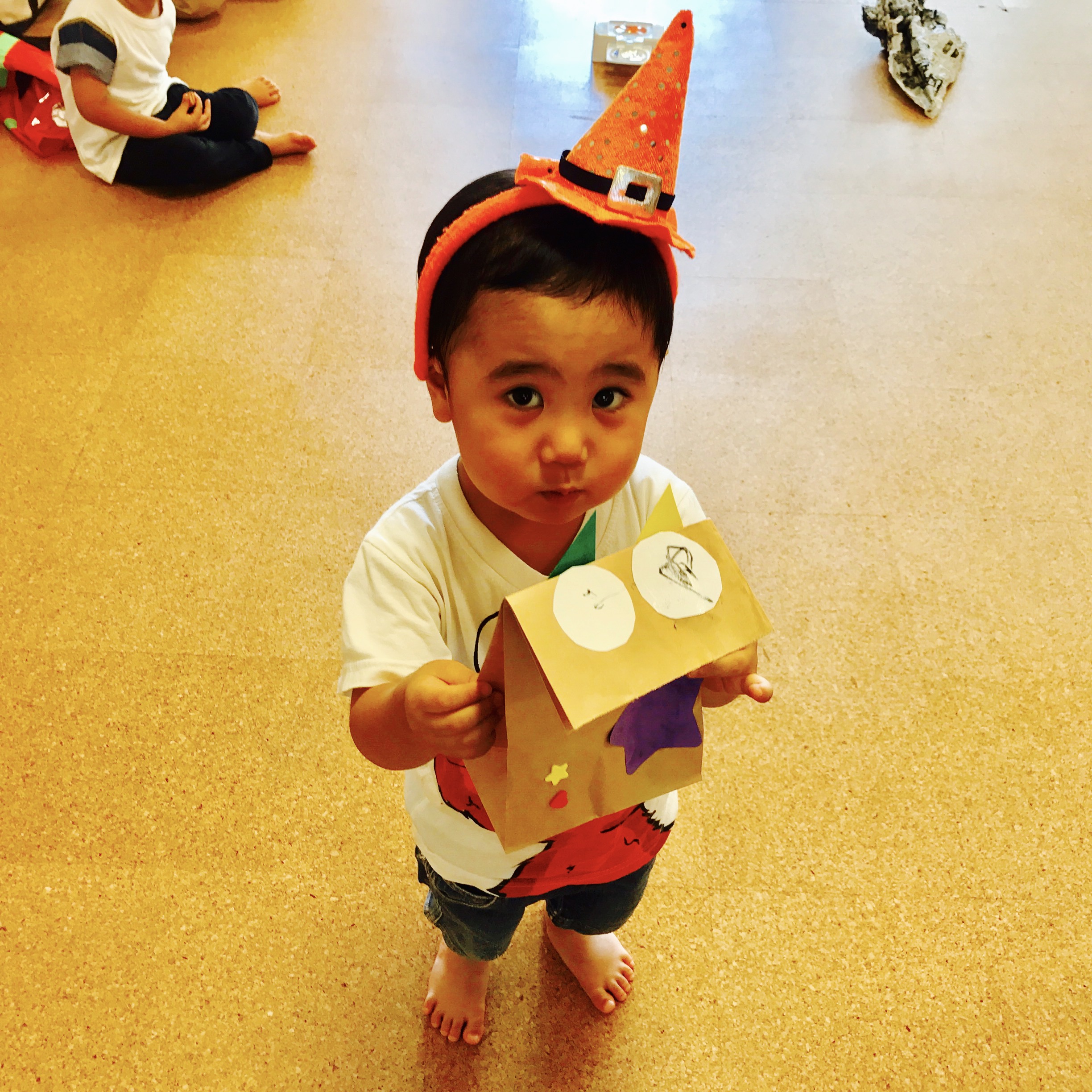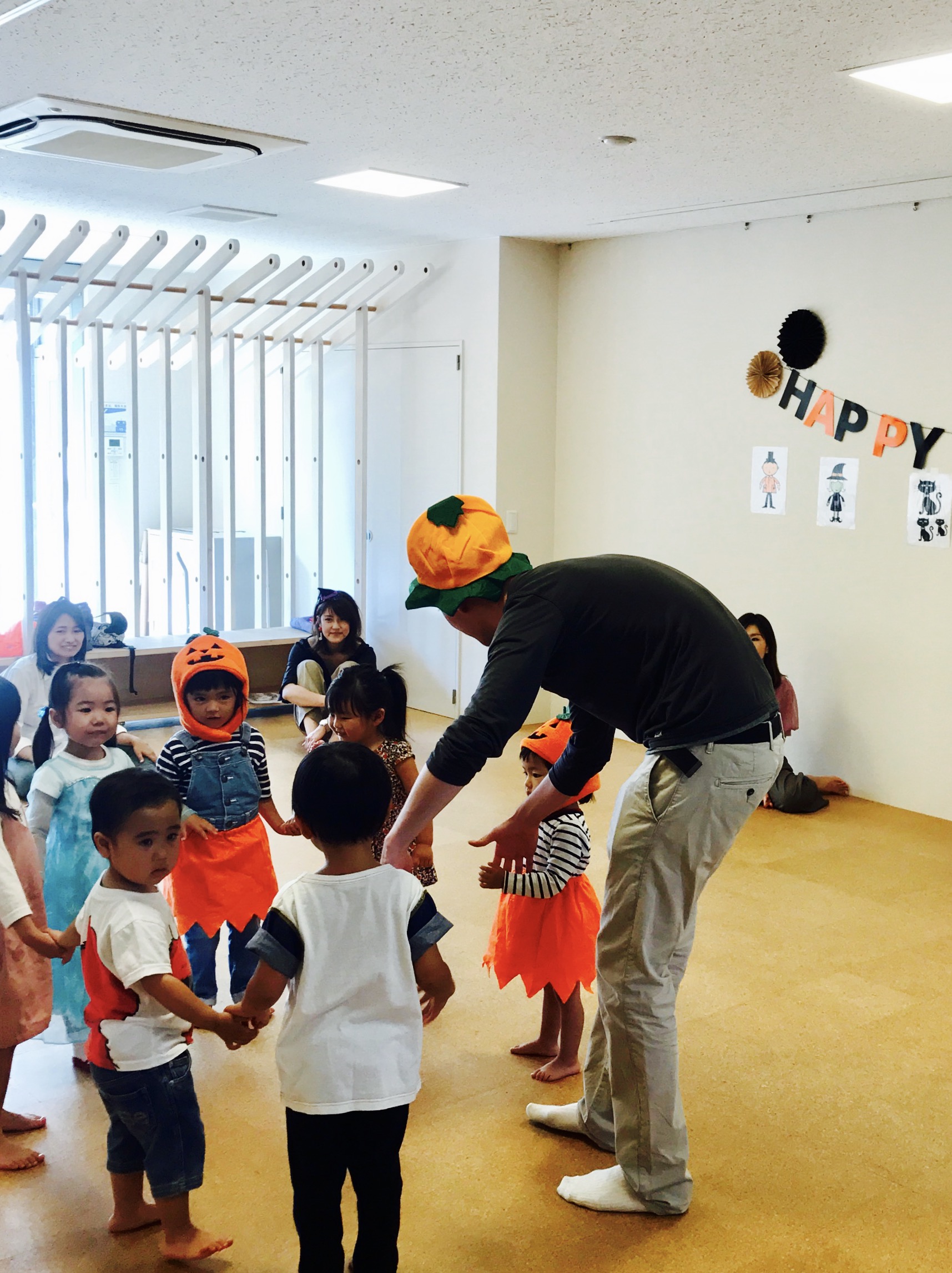 パンプキンの歌は女の子達は、怖〜い。。っとママのうしろに。