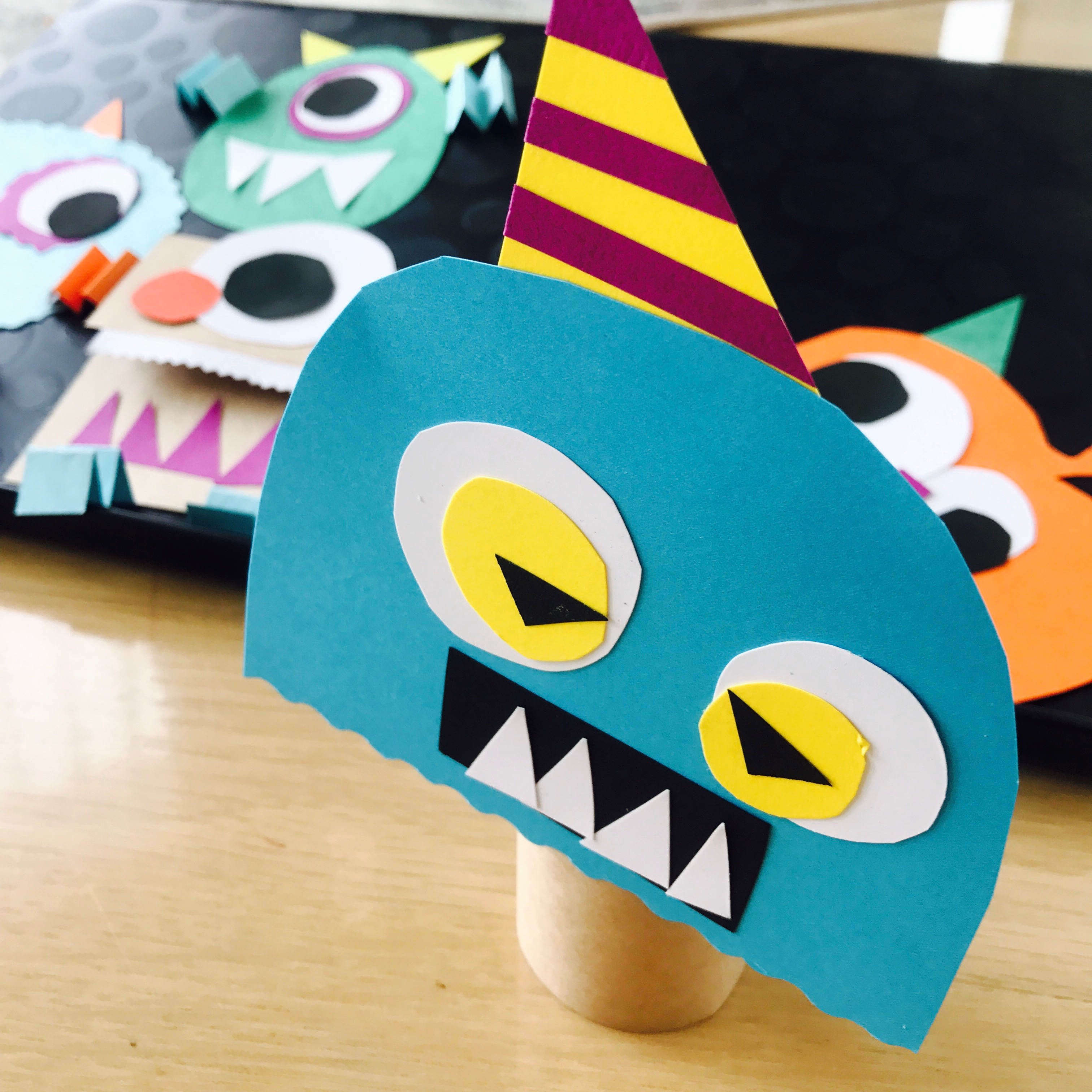 クラフトはオリジナルモンスター作り★やっぱり人気はパンプキンおばけ〜〜〜^^スケルトンハンド手形。これまた面白い!!何ができるのかなー?ってワクワクしていましたね。