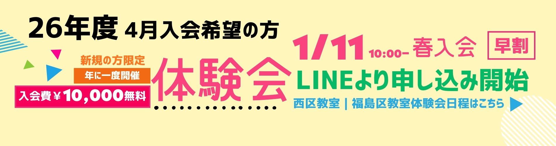 体験会の日程が難しい場合は既存のクラスへの体験とさせていただきます。