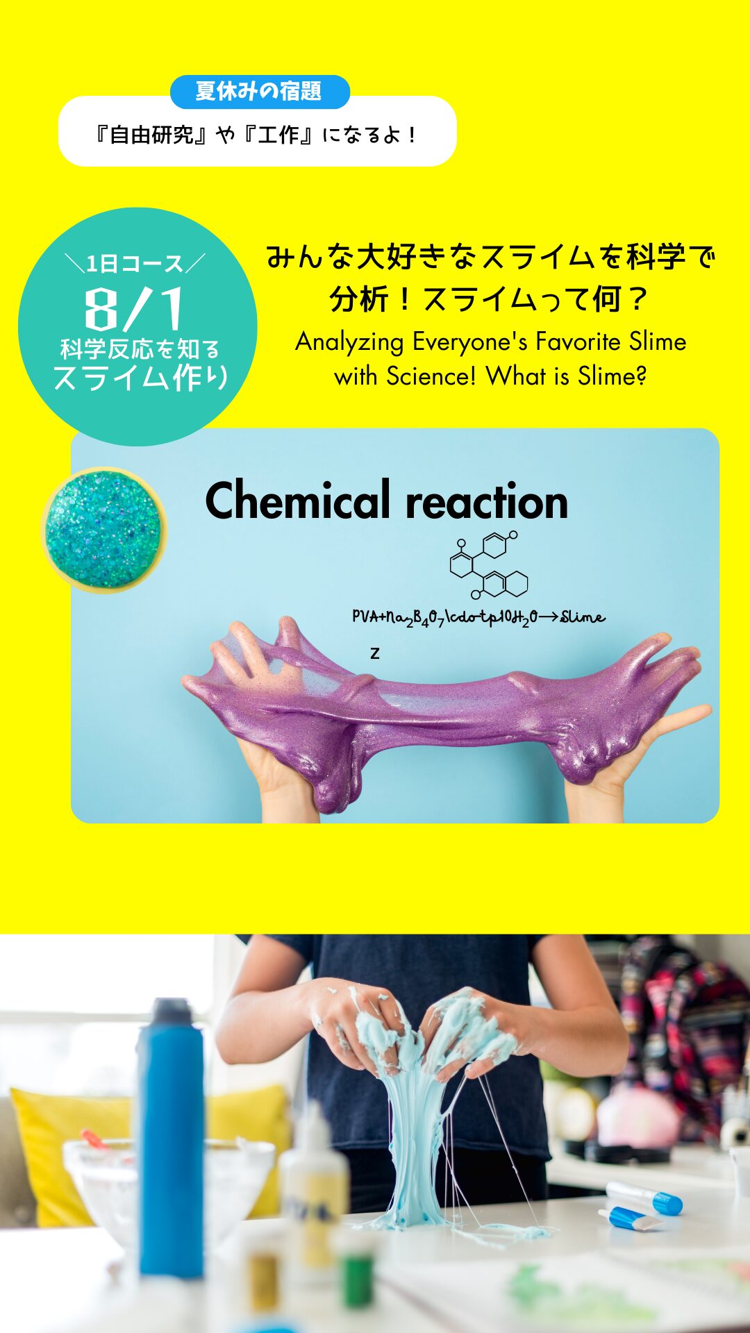 8/1|科学反応を|スライム作り|サイエンス&アート
